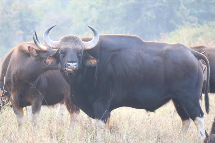 In that jeep there were Kumail dada, Radhika tai, Prajwal dada, and Muffaddal dada. As we passed the jungle gate and went ahead, I started feeling scared. I felt like a tiger could appear at any moment. It was a bit dark at that time. I had never seen such a vehicle before. That jeep was completely open. There was nothing covering it from above because we were supposed to be able to see everything outside. Only the driver’s seat was lower than ours and was fully enclosed. I wondered why that was the case? I felt a little cold there because the jeep was fully open, so I kept my bag in front of me. On the way, the guide told us that there is a 10-kilometer buffer zone, which means fewer animals would be visible there. As the sun was rising, we stopped the jeep at one place to take a picture of the sunrise. The sun looked beautiful because there were mountains on both sides and the sun in between. I had never seen such a view anywhere, not even in a photo or video. That scene was memorable for me. We went ahead from there and saw an animal. The guide told us its name. That animal was called a bison (wild bull). We knew that as we went forward, we would pass very close to that bison, because it was very near the road in front of us. There we saw people returning from the other side. After some time, when we reached where the bison was, it had moved a bit further away.