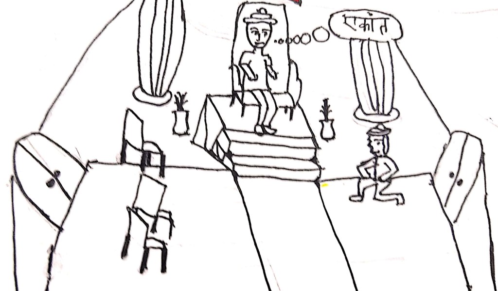 यह कहानी का तीसरा भाग है। इस कहानी को मैंने 9 भागों में बाँटा है। मुझे इन 9 शब्दों (राजा, शैतान, सेना, प्रजा, हाथी, घोडा, भाला, झंडा, लड़ाई) से कहानी बनाने का टास्क मिला था । जिस कहानी को मुझे दो पन्नों में लिखना था वह 2 , 3 , 4 , 5 . . . . करते करते रजिस्टर के 30 पन्नों की बन गयी। यह 30 पन्ने अचानक नहीं लिखे गये क्योंकि कई बार बिच बिच में मैंने इस कहानी को लिखना छोड़ दिया था , फिर वह गैप कभी कभी एक दो महीनों की भी हो जाती थी । मै लिखता गया , लिखता गया , लिखता ही गया …….. और इसी लिखने के सफ़र में एक साल कैसे निकल गया मुझे पता ही नहीं चला। ऐसे करते करते आख़िरकार इस कहानी को मैंने अंतिम मुक़ाम तक पहुंचा ही दिया। इस कहानी के चित्र मैंने और मेरी मम्मी ने बनाये , जिसे करीबन दो महीने लगे थे। आशा करता हूँ की आप इस कहानी के सारे भाग पढ़ेंगे और इसका लुफ़्त भी उठाएंगे। आपके सुझाव मुझे भविष्य में और बेहतर लिखने के लिए प्रेरणा देंगे।